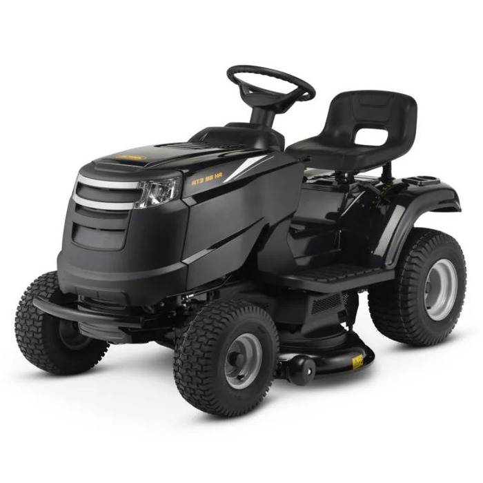 De Alpina AT3 98 HA is een compacte gazontractor met zij-uitworp en maakt gazononderhoud leuk dankzij zijn snelheid tot 8,8 km/u in combinatie met de comfortabele hydrostatische transmissie. Dit maakt het gemakkelijk om gazons dicht bij stenen of randen te maaien. Het middelpunt van de AT3 98 HA is de ST 400 motor (Powered by Stiga), die indruk maakt met een vermogen van 7,1 kW/9,6 pk bij 2.800 tpm en een cilinderinhoud van 414 cm³. De maaier is uitgerust met twee contraroterende dubbele messen en kan gemakkelijk worden ingeschakeld via de elektromagnetische koppeling. Er is een maaibreedte van 98 cm beschikbaar, waarvan de maaihoogte in 7 stappen kan worden ingesteld van 25 mm tot 80 mm. De jockeywielen zorgen er altijd voor dat de maaier de grond niet raakt.