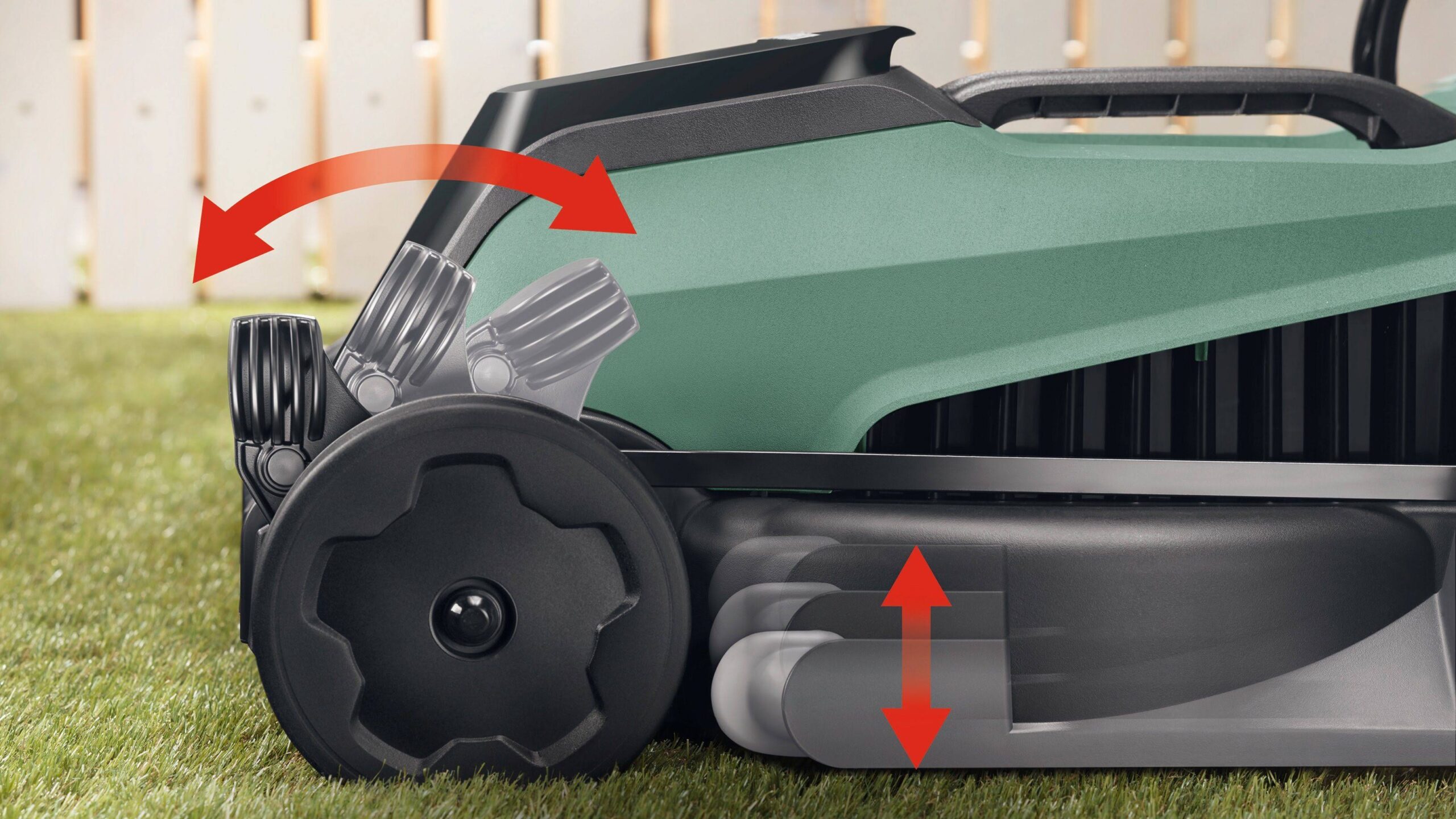 • Hendel voor centrale verstelling in 3 verschillende maaihoogtes tussen 30 en 60 mm
