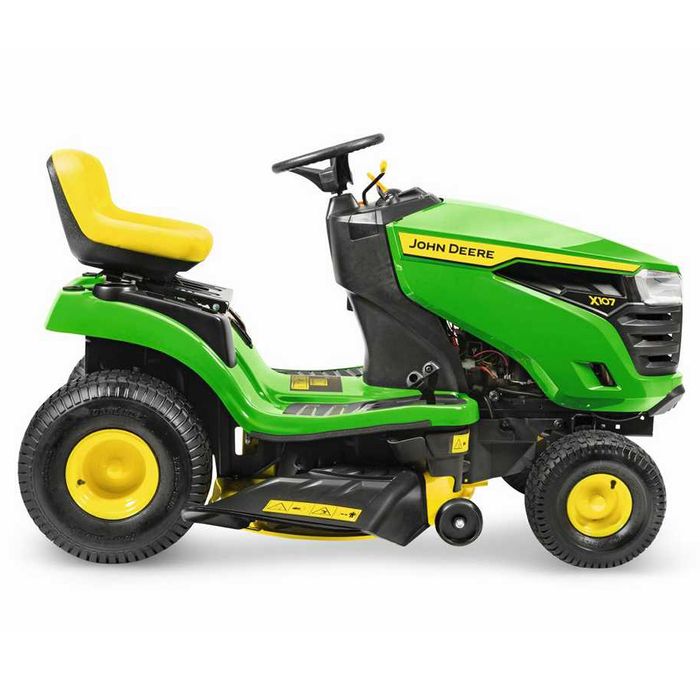 De prijs-prestatieverhouding van de X107 zitmaaier is van topklasse. Deze zitmaaier heeft een hydrostatische transmissie, een krachtige motor met van bovenaf bediende kleppen en een 107 cm kantmaaier met zij-uitworp, mulchunit of grasopvangbak. Er is ook een breed scala aan optionele uitrusting beschikbaar voor deze zitmaaier voor tal van andere gazononderhouds- en zelfs sneeuwruimtaken.