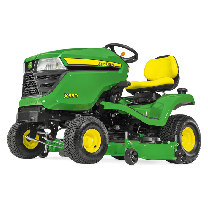 Als u op zoek bent naar een betaalbaar, eenvoudig instapmodel in het gazontractor segment, dan is de X350 precies wat u zoekt. Een modern, auto-achtig display, ergonomisch geplaatste bedieningselementen en een transmissie met Twin Touch™ pedaalbediening zorgen voor moeiteloos maaien. U kunt kiezen tussen verschillende maaidekken, zodat u met de X350 kunt rijden die het beste aan uw eisen voldoet.