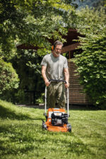 De RM 248 T Grasmaaier voortduwen kost nauwelijks kracht, zodat je je grasveld volledig ontspannen kunt maaien. Bovendien kun je de grasmaaier dankzij de opklapbare stuurstang makkelijk op bergen. De stuurstang heeft een Super-Softgrip zo kun je de maaier op een prettige en ergonomische manier besturen.
